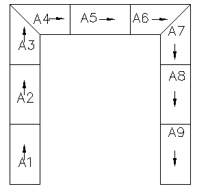 拼接关系图表示产品安装顺序与方向连接关系的图。是生产加工中非常重要的图,拼接图的编号由字母或数字构成,并用箭头标示安装方向。