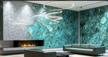 蓝翡翠的应用核心,是利用其天然的 “艺术感纹理” 与 “奢华光泽”,与金属、玻璃、高级织物等材质碰撞,在每一个场景中都打造出 “独一份” 的高端标识,让空间从 “普通奢华” 升级为 “艺术级奢华”。