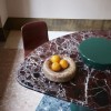 紫罗红大理石应用案例图1:紫罗红大理石茶几搭配绿植与金属框架,展现轻奢质感; 图2:弧形背景墙局部铺贴,结合灯带与木饰面; 图3:浴室台盆与淋浴区局部应用,搭配深色瓷砖; 图4:楼梯踏步与边柜的创意运用。