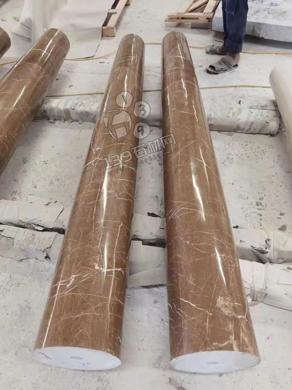 卡佐啡圆柱 实心柱磨光 网纹大理石 卡其色 低调奢华