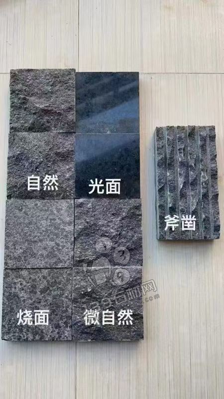 福鼎黑作为高硬度玄武岩(G684),四种主流表面处理(磨光面、自然面、斧剁面、火烧面)各有特色,既适配不同场景需求,也能呈现从精致到粗犷的多元风格。以下从「工艺特点、视觉触感、核心性能、适用场景」四个维度,做直观的样品解析: