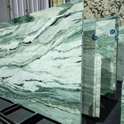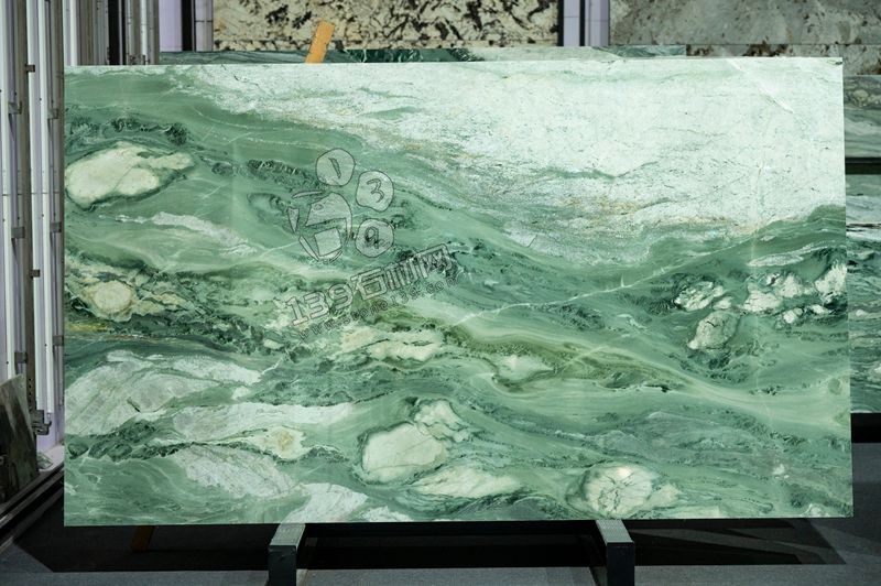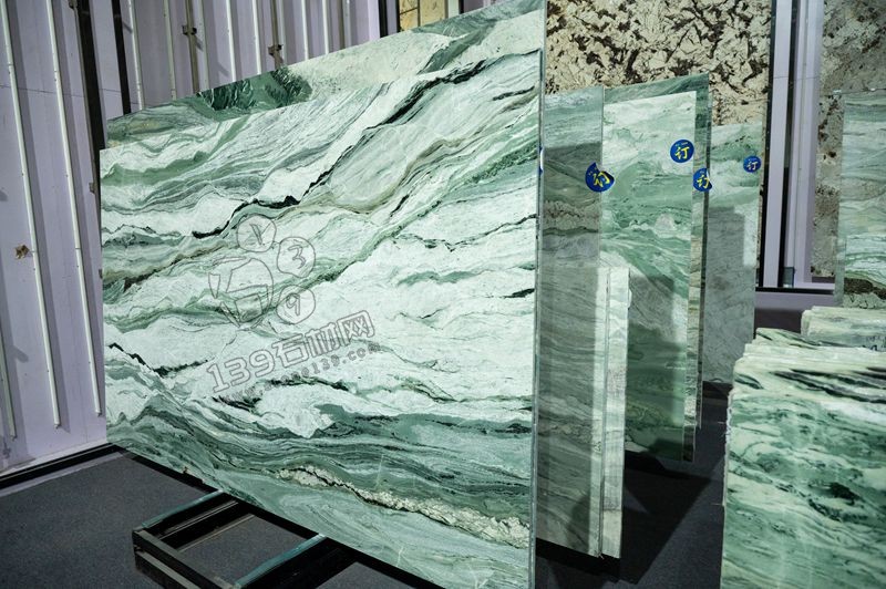 这几款浅色系维多利亚绿大理石板面的纹理特点及受家装客户喜爱的原因如下: