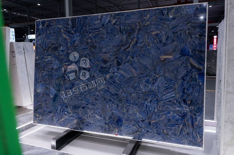 奢石景泰蓝奢石景泰蓝的纹理极具特色:整体以浓郁的深蓝色为基底,纹理呈现出类似丝状、片状的晶体交织形态,这些纹理相互缠绕、交错,形成了复杂且富有动感的图案。其中还夹杂着浅蓝、灰蓝以及少量金色的纹理线条,如同在深蓝色的画布上自然晕染、穿梭,整体纹理没有固定的走向,呈现出随性而又和谐的乱纹效果,每一处纹理的组合都像是天然的艺术创作,给人一种深邃且奢华的视觉感受,仿佛将景泰蓝工艺的斑斓色彩与纹理质感浓缩于石材之中。